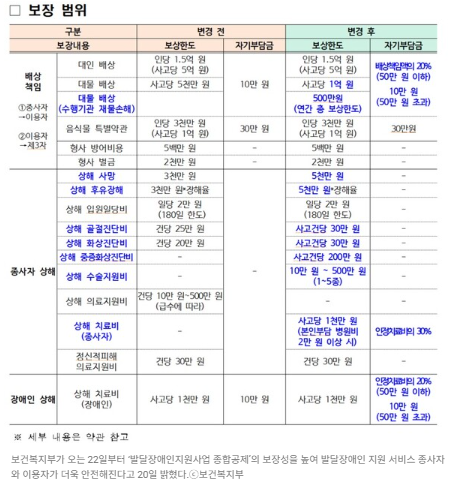 '발달장애인지원사업 종합공제' 자부담 인하·상해 치료비 신설