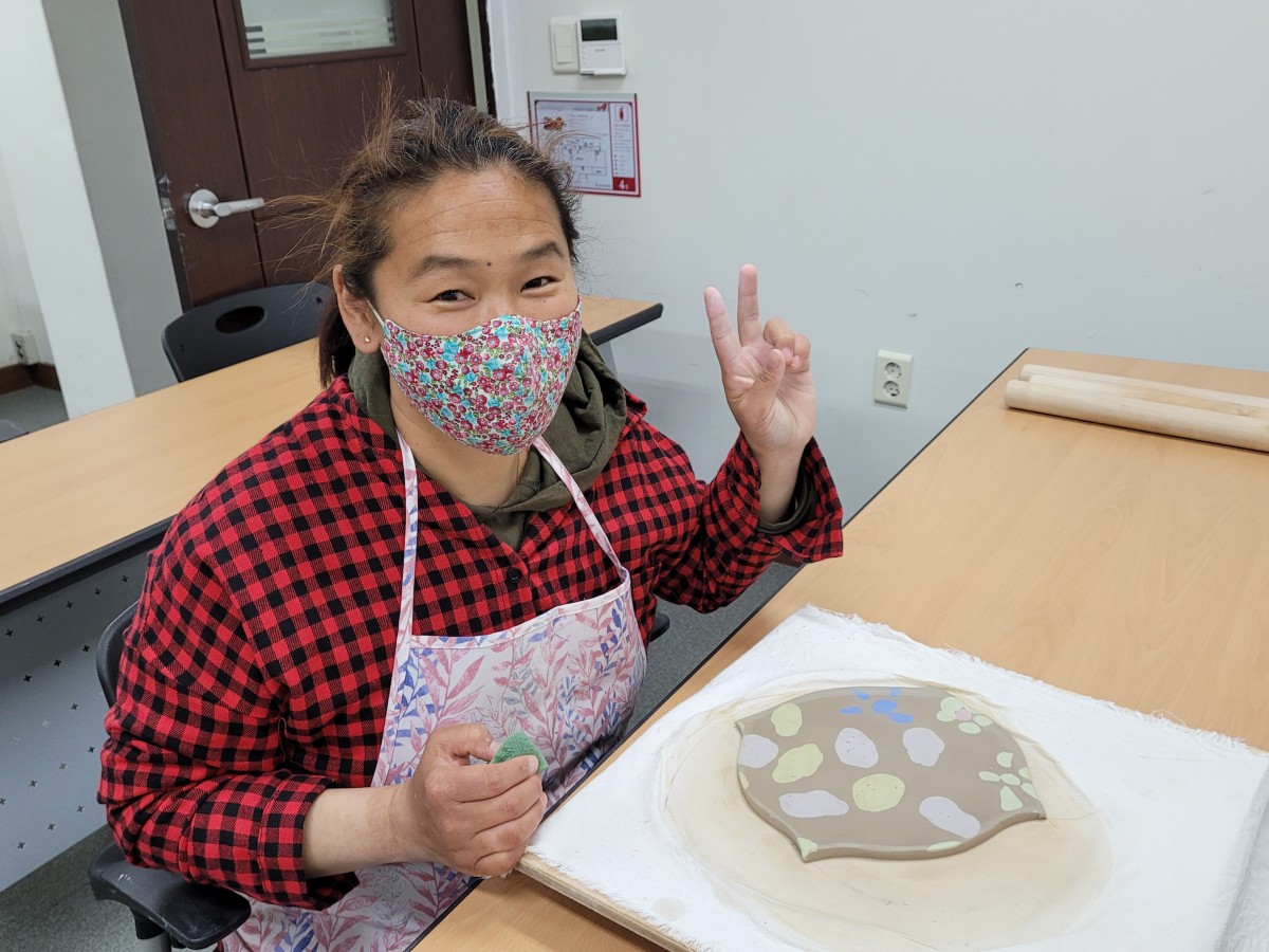 여성장애인 아트스쿨 [도예교실 2회차] 방서이 0 1993 2021.04.19 14:30 여성장애인 아트스쿨 [도예교실 2회차]4/15 여성장애인 아트스쿨 도예교실 2회차가 진행되었습니다. 오늘은 색점토를 원하는 모양으로 뜯어 붙여 트레이를 완성하는 수업이었어요개인마다 좋아하는 사물, 환경, 모습을 상상한 뒤 접시에 표현하였습니다. 포도, 봄, 우주,, 개인이 표현하고자 하는 것을 서로에게 말하며,함께 격려하고 작품을 감상하는 시간을 가졌습니다.